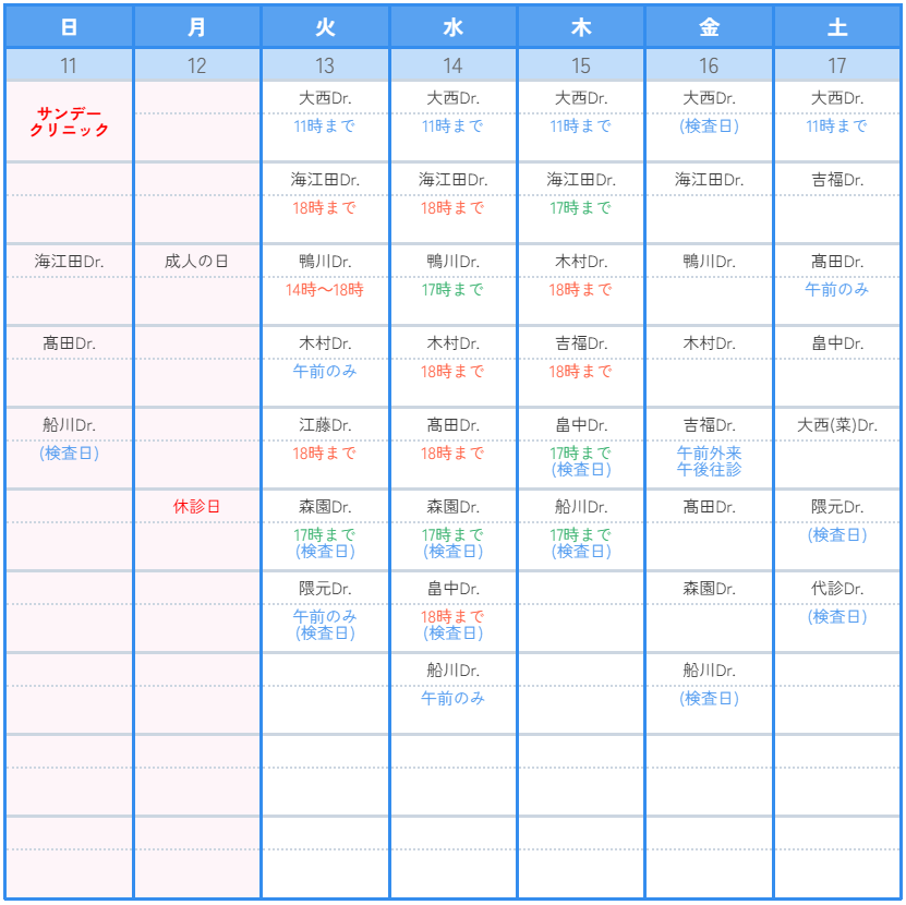 診療カレンダー1月