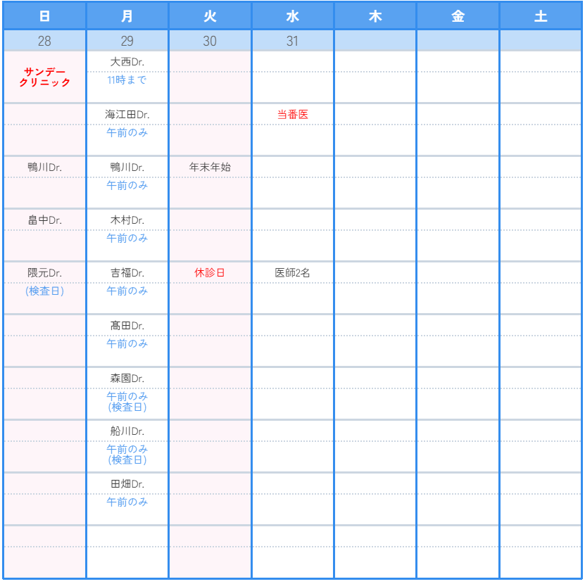 診療カレンダー12月