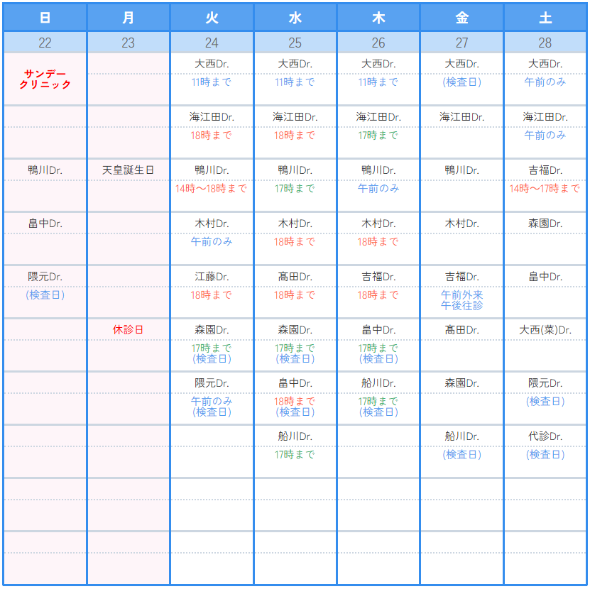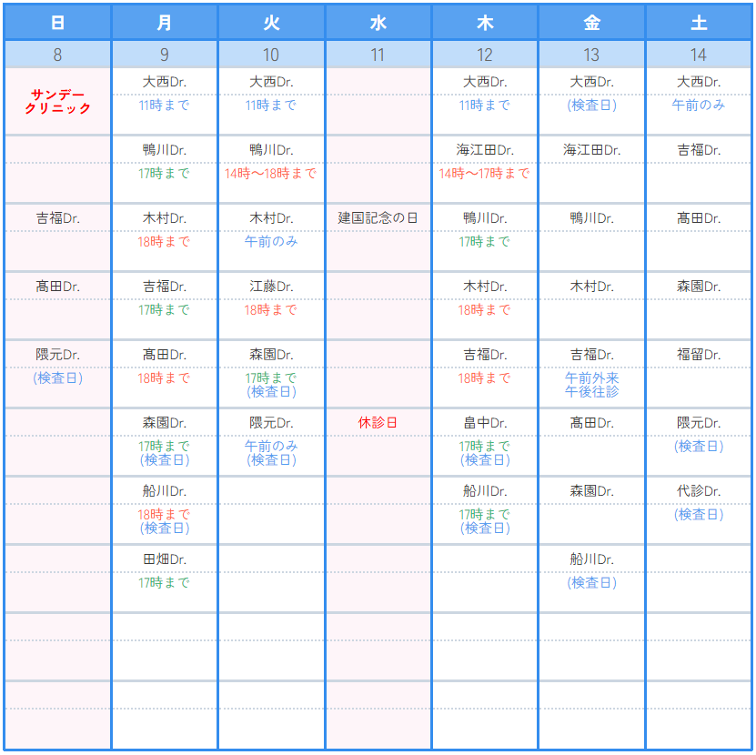 診療カレンダー2月