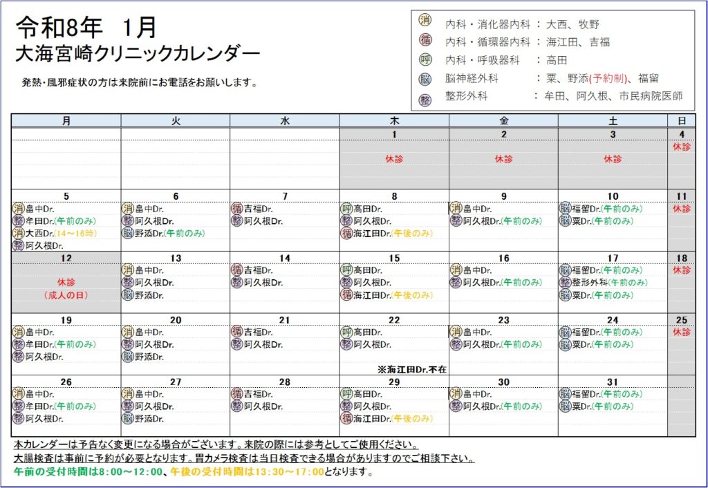 R8年1月 医師診療カレンダー