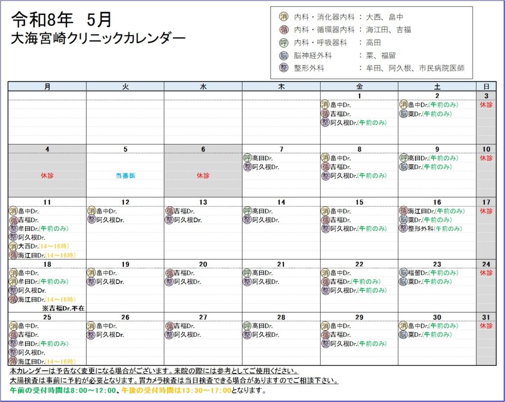 R8年5月 医師診療カレンダー